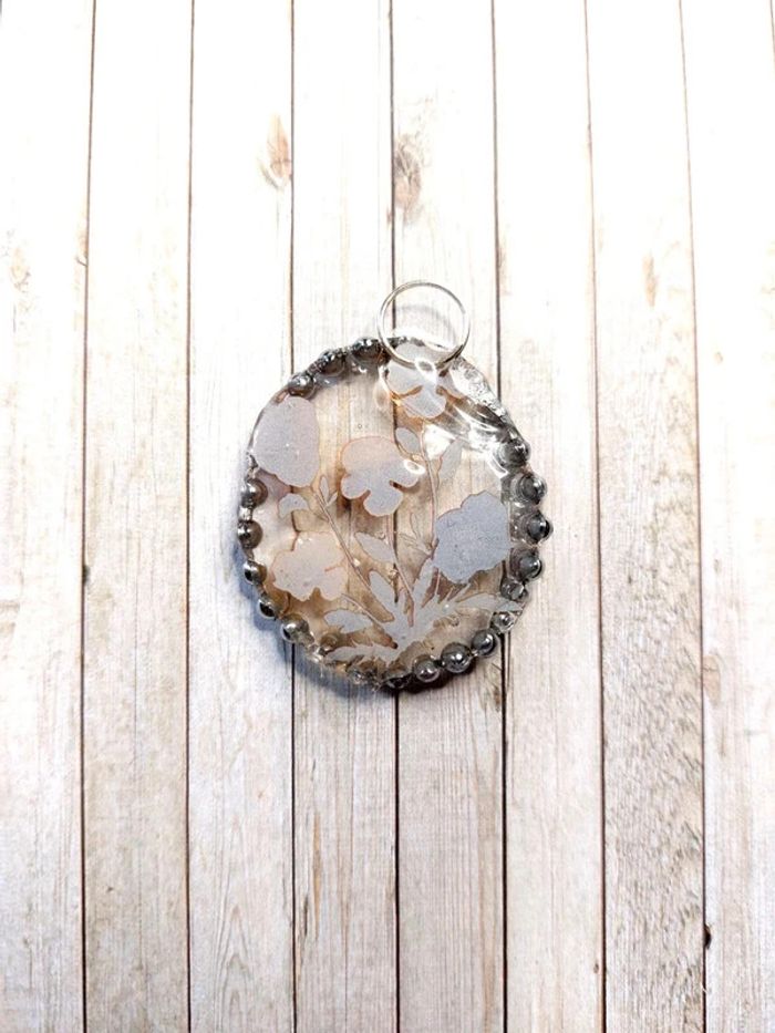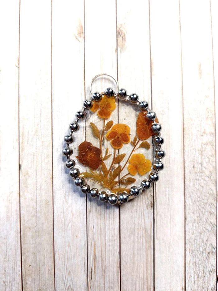 Magnifique pendentif en résine avec fleurs séchées - photo numéro 1