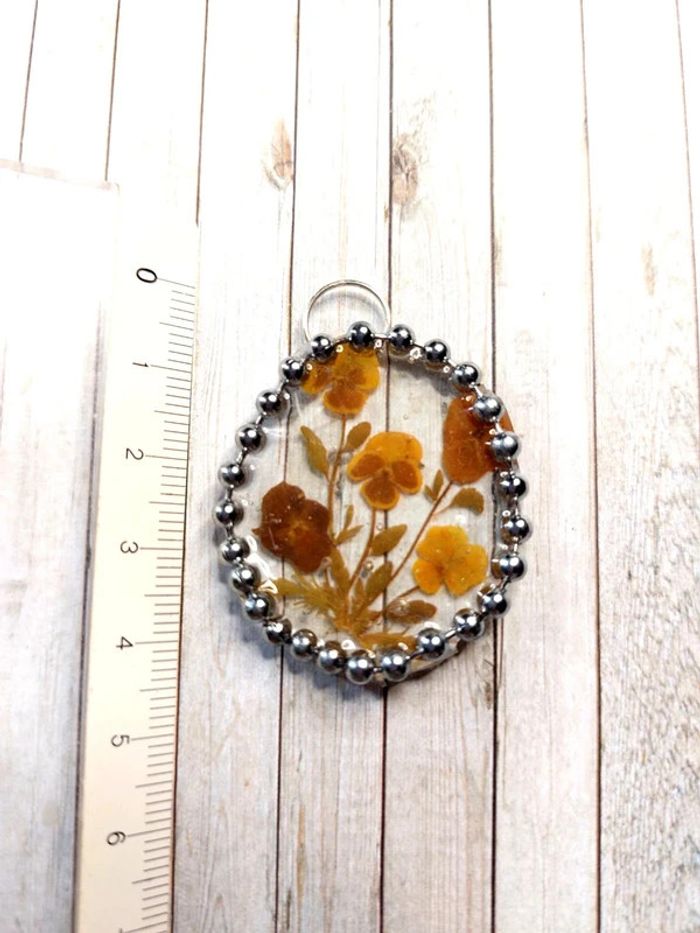 Magnifique pendentif en résine avec fleurs séchées - photo numéro 3