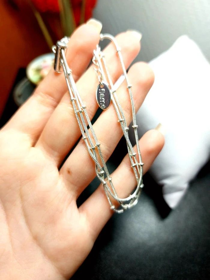 Magnifique bracelet 3 rangs, couleur argenté. Très bon état. D'autres bijoux sont à découvrir dans mon dressing #bijouxsupernova 🌌 Je suis disponible pour d'autres renseignements / ou demandes de lot. 🌌 Les envois se font soit le jour même ou en 72h maxi ! 🌌 J'accepte les offres raisonnables et les réductions sont activées sur les lots, de plus, un petit cadeau est toujours rajouté au colis. Tags Mode vintage chic hippie 60's 70's 80's 90's BCBG robe chemise pantalon jupe classe bijoux boucles d'oreilles collier pendentif bracelet celtique ethnique bohème ésotérique gothique punk grunge old school geek ancien brocante friperies france Paris parisienne qualité couture tournesol marilyn Monroe astro cosmétiques produits de beauté tissu japon breloque acier inoxydable plaqué or automne hiver printemps été Noël cadeau lune moon child fleurs petit prix réduction lot chouchou scrunchie rétro kawaii japon t-shirt débardeur tunique blouse chemisier camisa camicia vestido vestito pantalones remise lotes jurk Flores brillant coton polyester satin soie jeans elastane sexy élégant pièce rare rome Madrid multicolore noir blanc rouge bleu jaune vert rose orange violet marron pas cher soldes 50% unique look outfit tenue complète conjunto