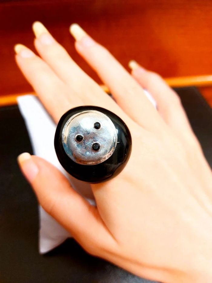 Magnifique bague fantaisie ajustable noire et argenté. Très bon état. D'autres bijoux sont à découvrir dans mon dressing #bijouxsupernova 🌌 Je suis disponible pour d'autres renseignements / ou demandes de lot. 🌌 Les envois se font soit le jour même ou en 72h maxi ! 🌌 J'accepte les offres raisonnables et les réductions sont activées sur les lots, de plus, un petit cadeau est toujours rajouté au colis. Tags Mode vintage chic hippie 60's 70's 80's 90's BCBG robe chemise pantalon jupe classe bijoux boucles d'oreilles collier pendentif bracelet celtique ethnique bohème ésotérique gothique punk grunge old school geek ancien brocante friperies france Paris parisienne qualité couture tournesol marilyn Monroe astro cosmétiques produits de beauté tissu japon breloque acier inoxydable plaqué or automne hiver printemps été Noël cadeau lune moon child fleurs petit prix réduction lot chouchou scrunchie rétro kawaii japon t-shirt débardeur tunique blouse chemisier camisa camicia vestido vestito pantalones remise lotes jurk Flores brillant coton polyester satin soie jeans elastane sexy élégant pièce rare rome Madrid multicolore noir blanc rouge bleu jaune vert rose orange violet marron pas cher soldes 50% unique look outfit tenue complète conjunto