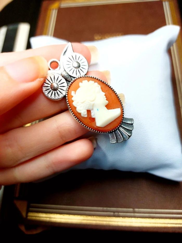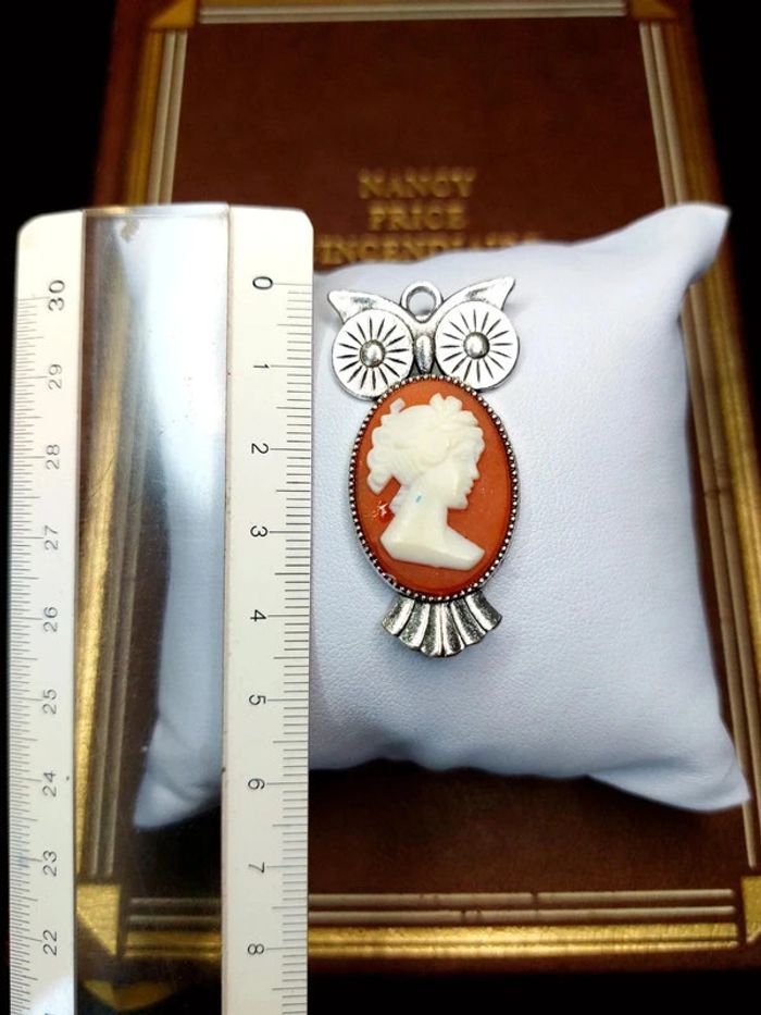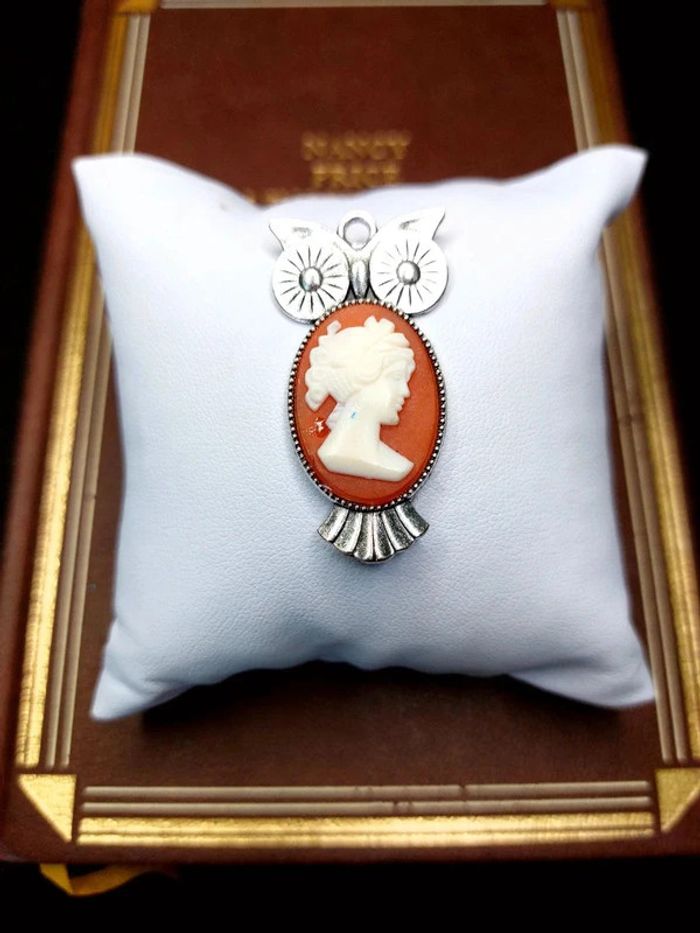 Magnifique pendentif avec cabochon style camée vintage chouette hibou - photo numéro 7
