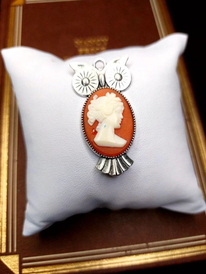 Magnifique pendentif avec cabochon style camée vintage chouette hibou