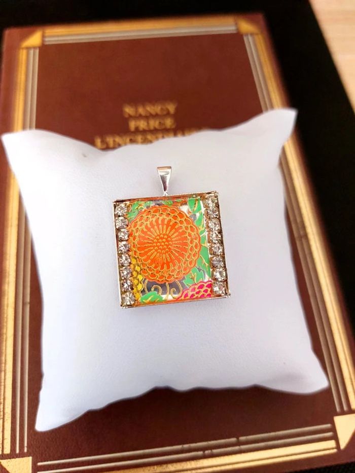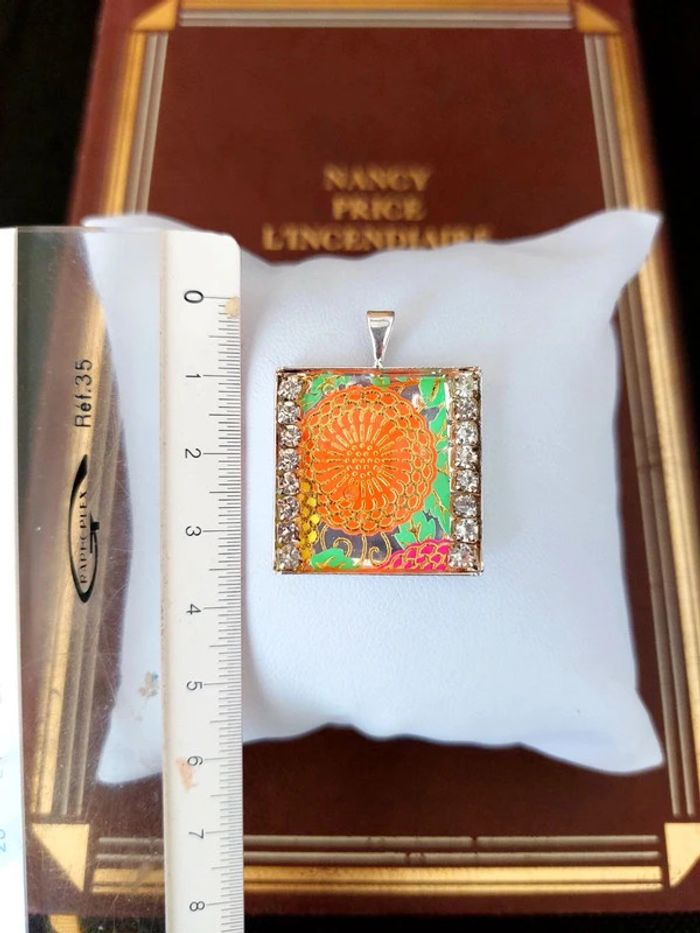 Magnifique pendentif carré avec strass et image aux couleurs fluorescentes - photo numéro 4