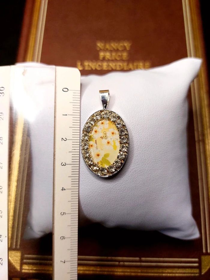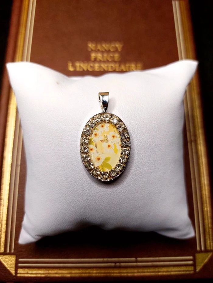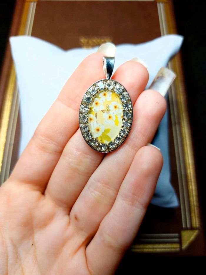 Magnifique pendentif médaillon avec strass et image fleuri jaune - photo numéro 5