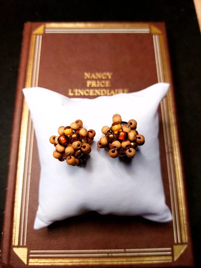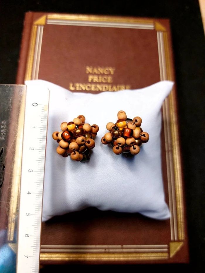 Magnifique paire de boucles d'oreilles à clip, en perles de bois - photo numéro 1