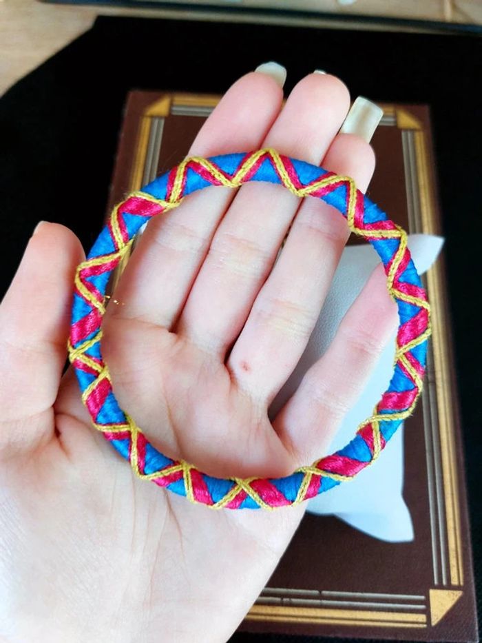 Magnifique bracelet jonc, tissu en cordelette bleu, rouge et jaune. Très bon état. D'autres bijoux sont à découvrir dans mon dressing #bijouxsupernova 🌌 Je suis disponible pour d'autres renseignements / ou demandes de lot. 🌌 Les envois se font soit le jour même ou en 72h maxi ! 🌌 J'accepte les offres raisonnables et les réductions sont activées sur les lots, de plus, un petit cadeau est toujours rajouté au colis. Tags Mode vintage chic hippie 60's 70's 80's 90's BCBG robe chemise pantalon jupe classe bijoux boucles d'oreilles collier pendentif bracelet celtique ethnique bohème ésotérique gothique punk grunge old school geek ancien brocante friperies france Paris parisienne qualité couture tournesol marilyn Monroe astro cosmétiques produits de beauté tissu japon breloque acier inoxydable plaqué or automne hiver printemps été Noël cadeau lune moon child fleurs petit prix réduction lot chouchou scrunchie rétro kawaii japon t-shirt débardeur tunique blouse chemisier camisa camicia vestido vestito pantalones remise lotes jurk Flores brillant coton polyester satin soie jeans elastane sexy élégant pièce rare rome Madrid multicolore noir blanc rouge bleu jaune vert rose orange violet marron pas cher soldes 50% unique look outfit tenue complète conjunto