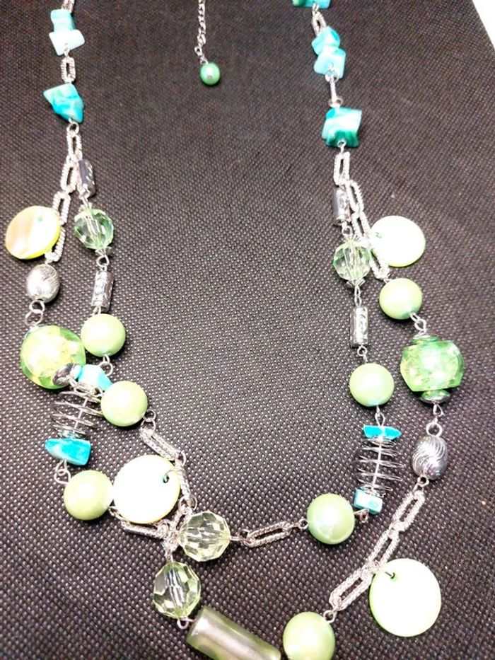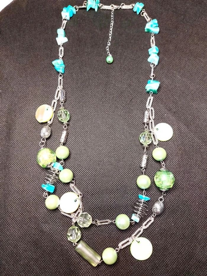 Magnifique collier sautoir double rangs en perles bleu et verte - photo numéro 1