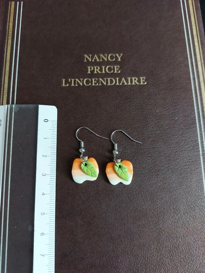 Magnifique paire de boucles d'oreilles pendantes en pâte polymere fruit pêche 🍑. Style kawaii. Neuves. D'autres bijoux sont à découvrir dans mon dressing #bijouxsupernova 🌌 Je suis disponible pour d'autres renseignements / ou demandes de lot. 🌌 Les envois se font soit le jour même ou en 72h maxi ! 🌌 J'accepte les offres raisonnables et les réductions sont activées sur les lots, de plus, un petit cadeau est toujours rajouté au colis. Tags Mode vintage chic hippie 60's 70's 80's 90's BCBG robe chemise pantalon jupe classe bijoux boucles d'oreilles collier pendentif bracelet celtique ethnique bohème ésotérique gothique punk grunge old school geek ancien brocante friperies france Paris parisienne qualité couture tournesol marilyn Monroe astro cosmétiques produits de beauté tissu japon breloque acier inoxydable plaqué or automne hiver printemps été Noël cadeau lune moon child fleurs petit prix réduction lot chouchou scrunchie rétro kawaii japon t-shirt débardeur tunique blouse chemisier camisa camicia vestido vestito pantalones remise lotes jurk Flores brillant coton polyester satin soie jeans elastane sexy élégant pièce rare rome Madrid multicolore noir blanc rouge bleu jaune vert rose orange violet marron pas cher soldes 50% unique look outfit tenue complète conjunto