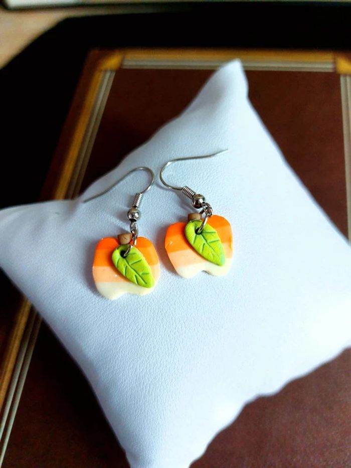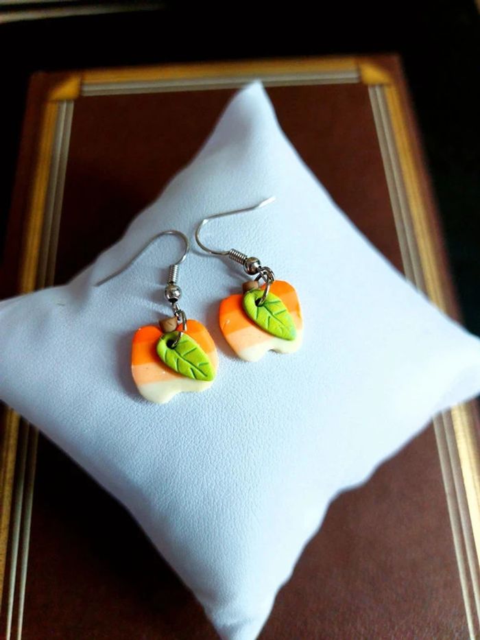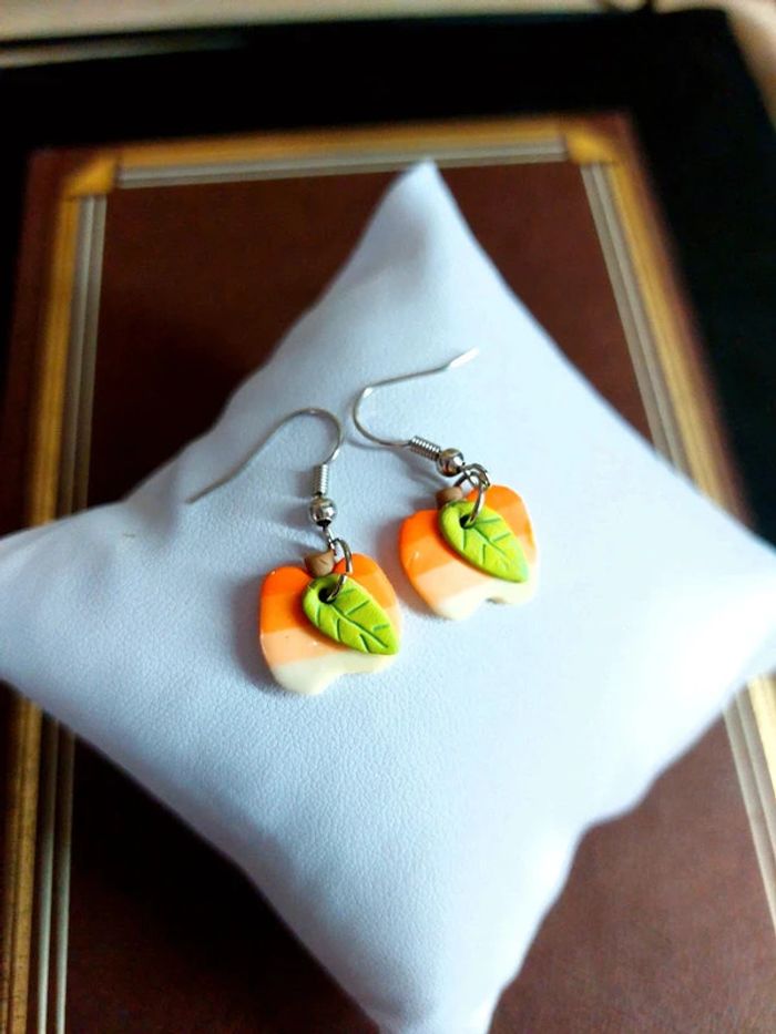 Magnifique paire de boucles d'oreilles pendantes en pâte polymere fruit pêche - photo numéro 1