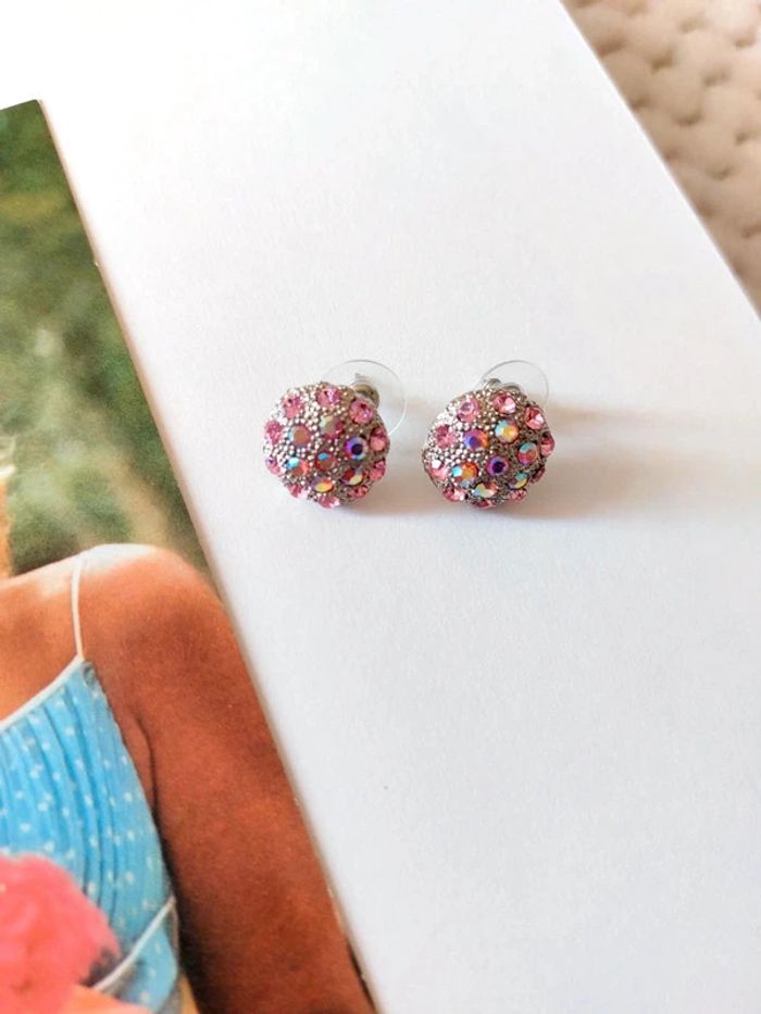 Magnifique paire de boucles d'oreilles puces à strass rose