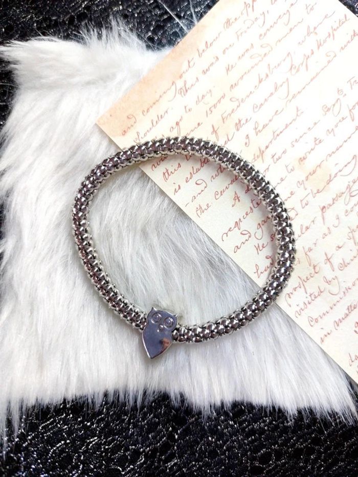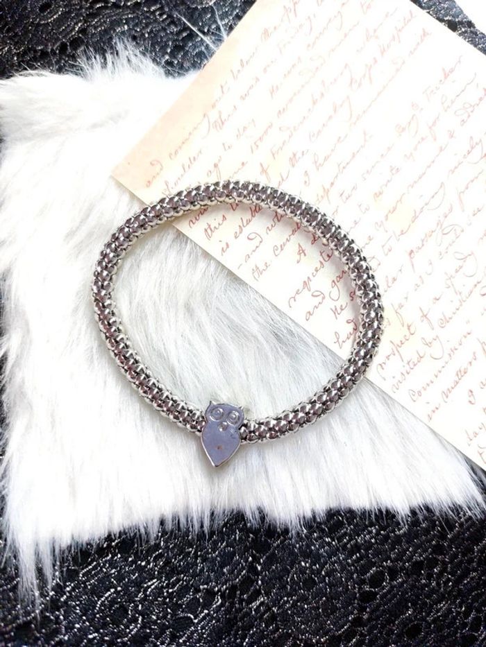 Magnifique bracelet couleur argenté extensible, avec charm hibou - photo numéro 1