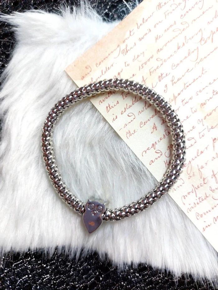 Magnifique bracelet couleur argenté extensible, avec charm hibou - photo numéro 2