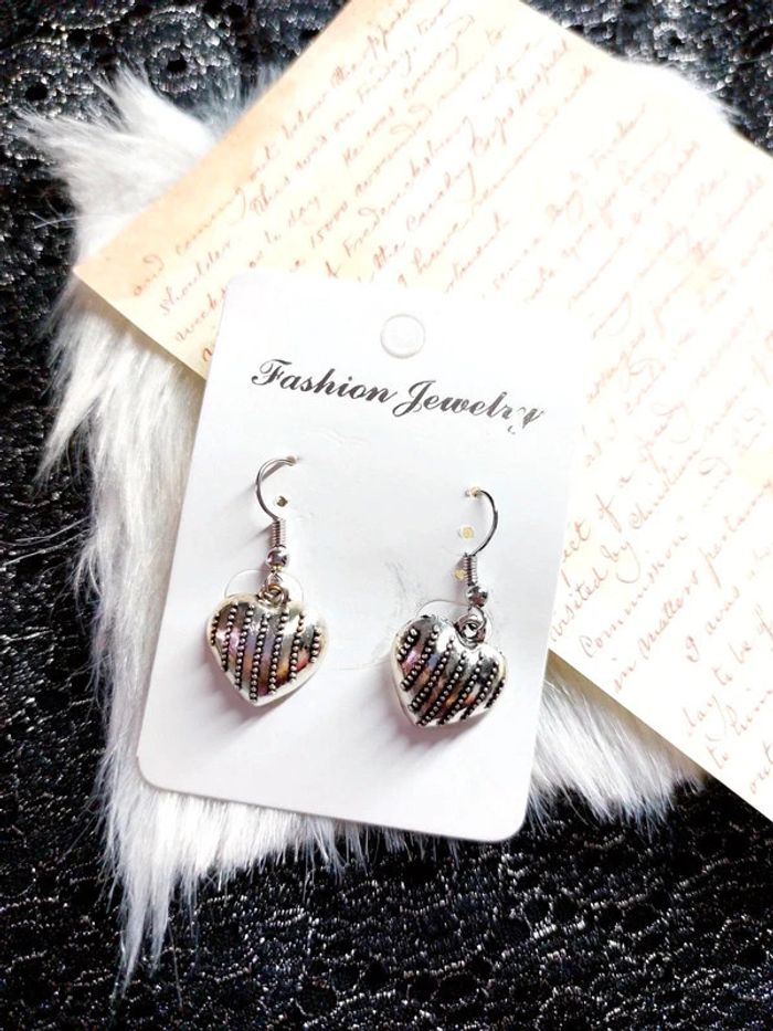 Magnifique paire de boucles d'oreilles pendantes cœur couleur argenté - photo numéro 3