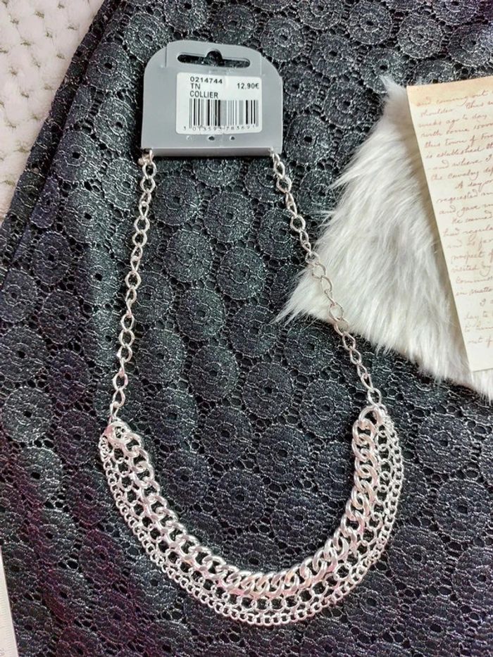 Magnifique collier couleur argenté style chaînette neuf - photo numéro 2