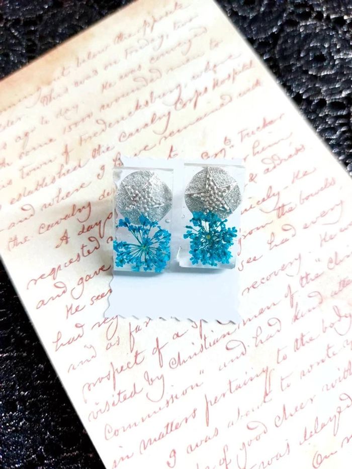 🕯Bienvenue dans un univers vintage victorien 🕯 Tout droit sorti du coffre à bijoux, voici une magnifique paire de boucles d'oreilles puces rectangulaire en résine, avec étoile argenté et fleurs bleu. Chic et raffinée, elles sauront embellir vos tenues en rajoutant une touche d'originalité. 🗝🕰🔮 En très bon état ✨️ 🖤 Venez découvrir d'autres bijoux toujours dans une ambiance vintage victorien, gothique chic, via #bijouxsupernova 🌌 Je suis disponible pour d'autres renseignements / ou demandes de lot. 🌌 Les envois se font soit le jour même ou en 72h maxi ! 🌌 J'accepte les offres raisonnables et les réductions sont activées sur les lots, de plus, un petit cadeau est toujours rajouté au colis.