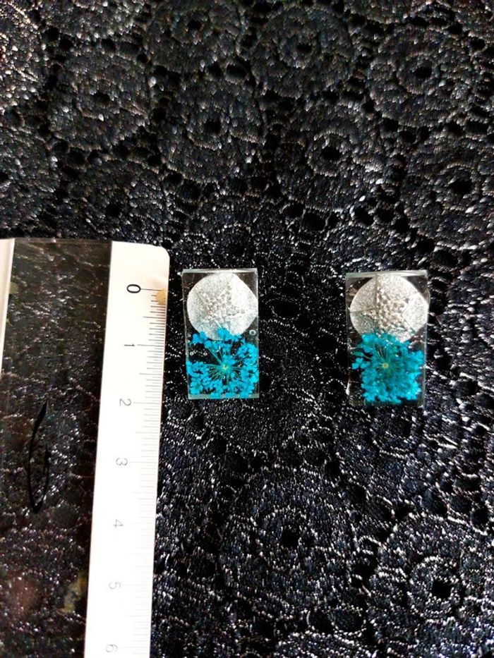 magnifique paire de boucles d'oreilles puces rectangulaire en résine - photo numéro 1