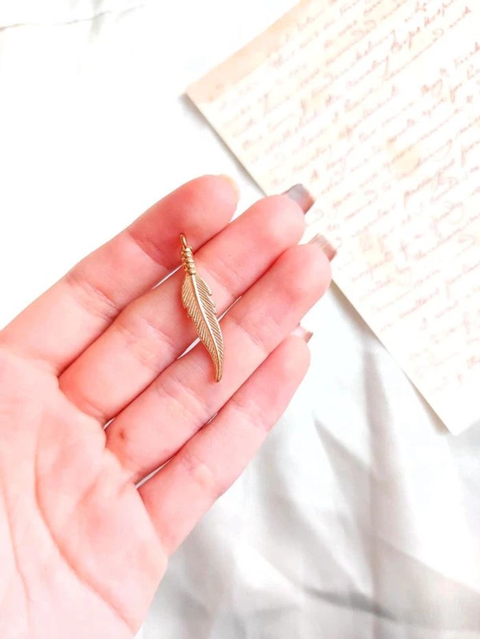magnifique pendentif plume couleur doré - photo numéro 3