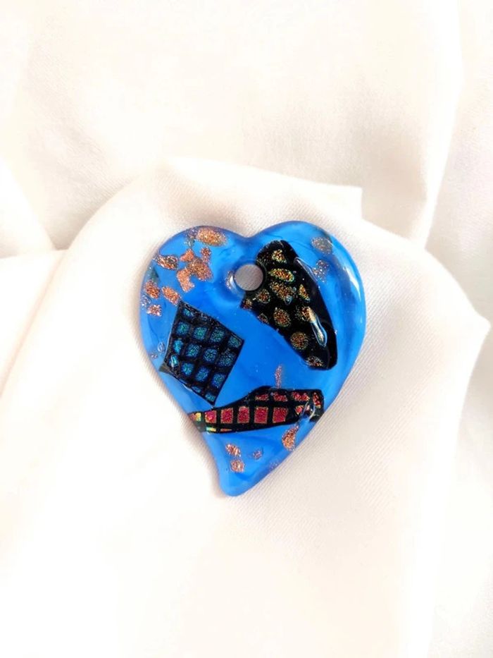 Pendentif cœur bleu en verre de murano - photo numéro 5