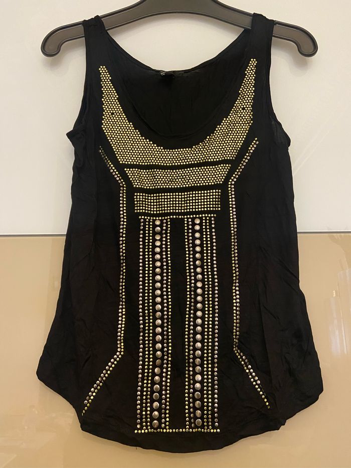 Débardeur noir avec strass dorés et argentés Viscose