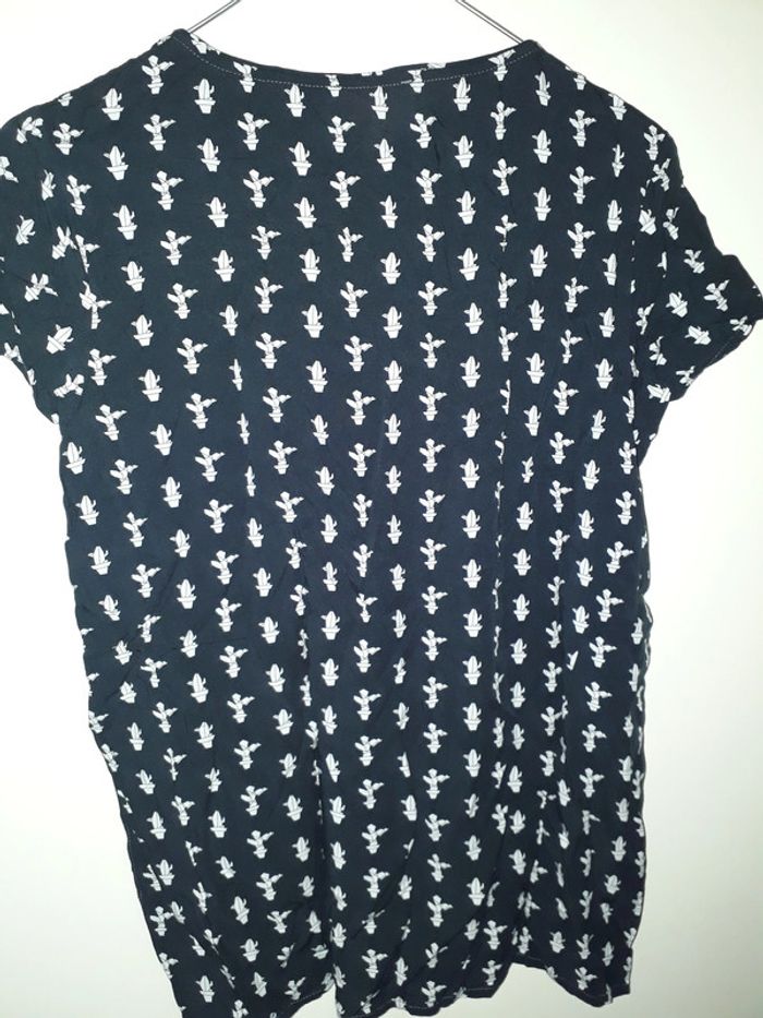 Top cactus couleur marine à manches courte avec une fermeture devant.