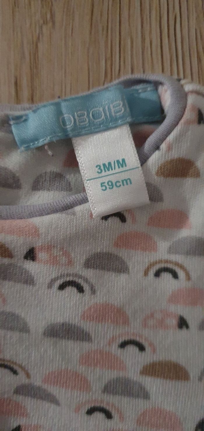 Robe 🚼 Pressions dos manches longues Couleur blanc avec dessins rose gris Taille 3 mois 59 cm Marque Obaibi Maison non fumeur Linge lavé avec lessive bébé