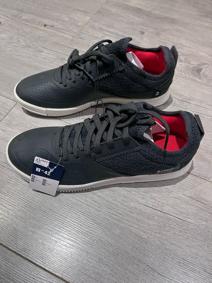 Basket couleur gris anthracite/noir Neuves jamais portées Présente des traces de colle sur la semelle (voir photo) Prix neuf : 40€ sur Décathlon