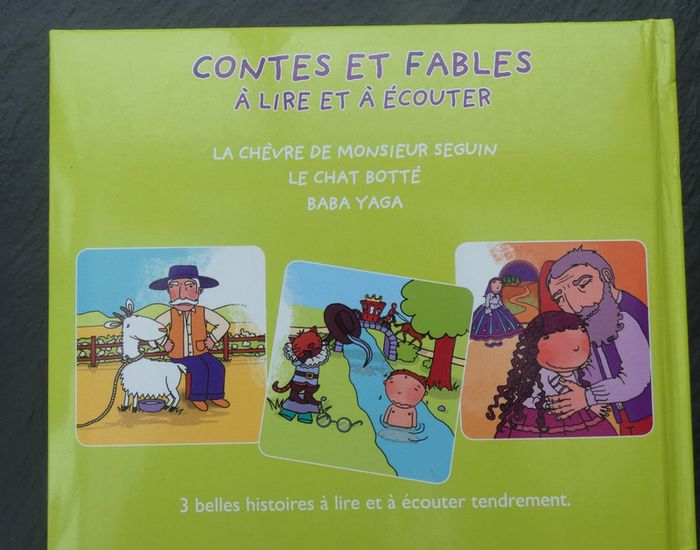 Vends ce joli livre comprenant trois histoires et un CD les racontant : "La chèvre de Mr Seguin" "Le chat botté" "Baba Yaga". Etat neuf. #titiya76livre
