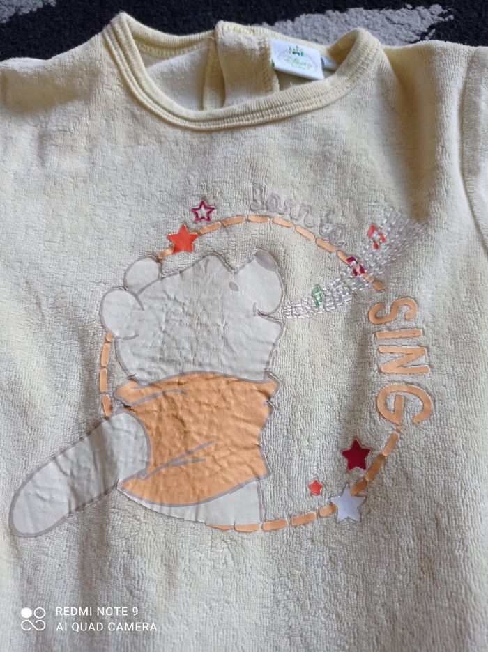Pijama Winnie en bon état, dessin un peu usé voir photos, sinon le reste est nickel. Taille 12 mois.