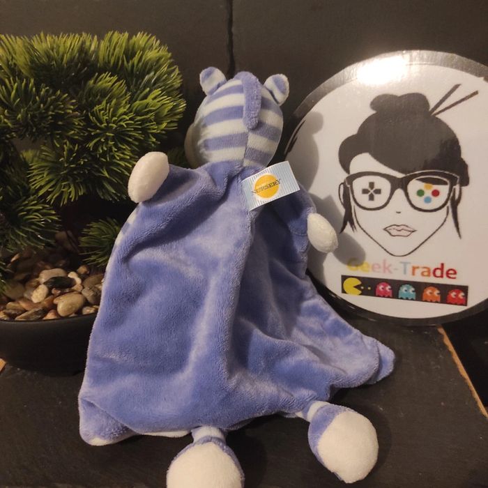 Doudou Knuffel  Doudou Babysun Ane Cheval Zèbre Bleu Violet Rayé Rayure #geektradedoudou Bon etat Afin de ne pas abîmer les doudous et de laisser le choix dans l'utilisation de la lessive les peluches ne sont pas lavées avant envoi Description complément : Petit nettoyage à prévoir Vous achetez ce que vous voyez les photos font entièrement partie de la description Transport : Les frais de transport comprennent les frais du transporteur ainsi que l'emballage pour protéger au mieux votre achat. Chaque achat est envoyé en format colis avec numéro de suivi Le poids du colis est de 500g finit (je ne peux pas faire moins) il peut donc y avoir plusieurs objets dans le carton si vous le souhaitez (contactez moi afinde grouper les frais de port) Référencement : #geektradedoudou #peluche #plush  #doudou #enfant #bebe