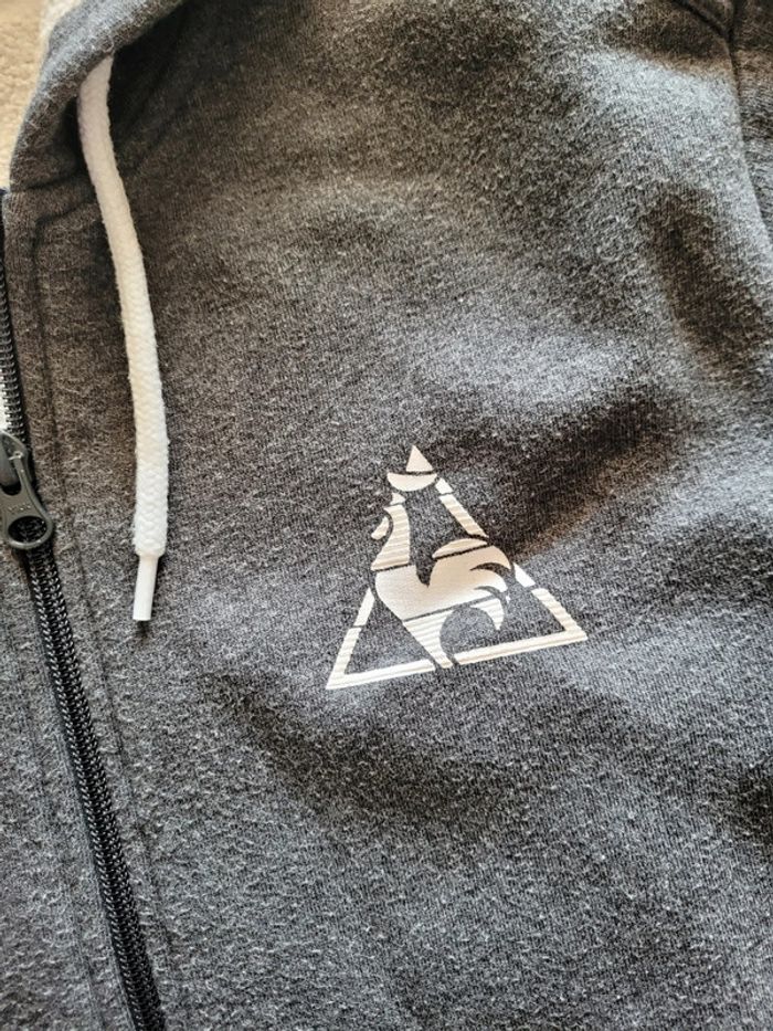 Veste zippée à capuche de marque Le coq sportif en taille M. Matière à effet relief ( difficile d'expliquer, visible en 2eme photo). Ce n'ai pas de l'usure, la veste à été achetée comme cela. Erreur de taille de belle maman pour son fils 😂 Bref, elle à donc été porter 1x car trop petite. Nombreux d'autres vêtements disponibles, n'hésitez pas à jeter un coup d'oeil à mon dressing ou servez vous du hashtag suivant sans filtres: #morgane3007homme