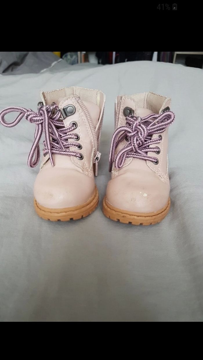 Bottines en cuir rose, taille 19, abîmé au bout voir photo