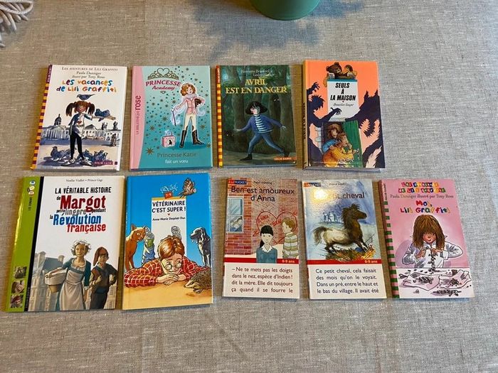 En très bon état, lot de neuf romans variés plutôt orientés filles, âge de lecture 8 ans.