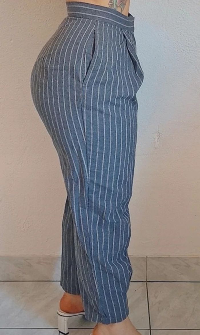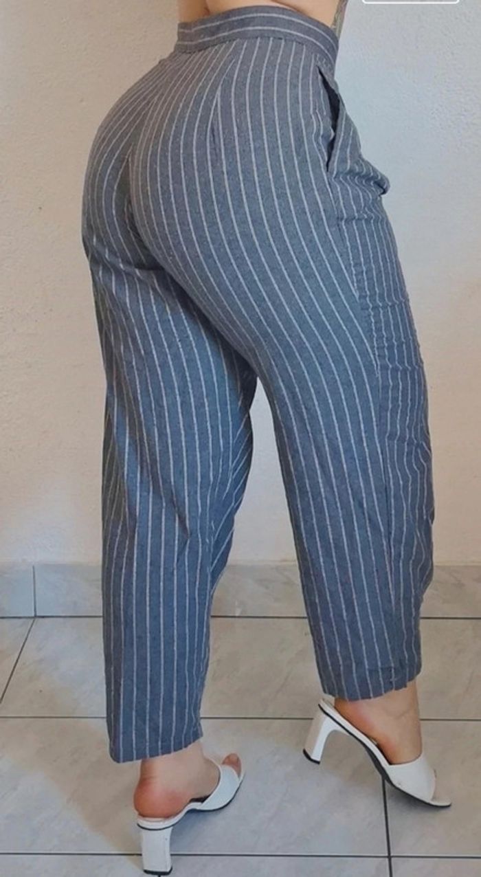 Taille XL Jolie pantalon rayé avec 2 poche à l'avant Se ferme avec une fermeture éclair et encoche Taille haute, matière 65% coton