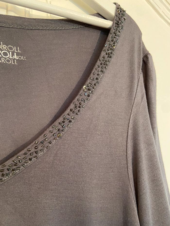 Top Caroll gris encolure perlée taille 42 - photo numéro 6