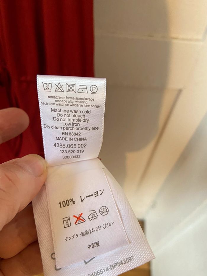 Jolie robe fluide et légère en jersey viscose Taille resserrée par lien coulissant Poches latérales Manches trois-quarts Jolie couleur brique, entre bordeaux et rouille Longueur totale 114 cm, 90 cm depuis le centre bas de l’encolure Jamais portée