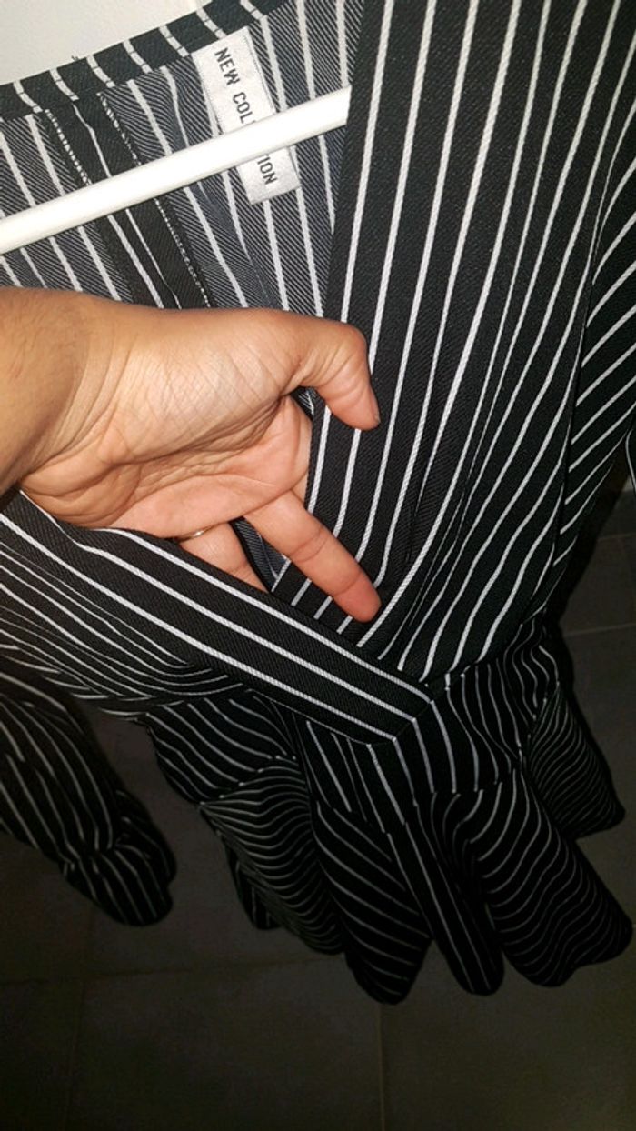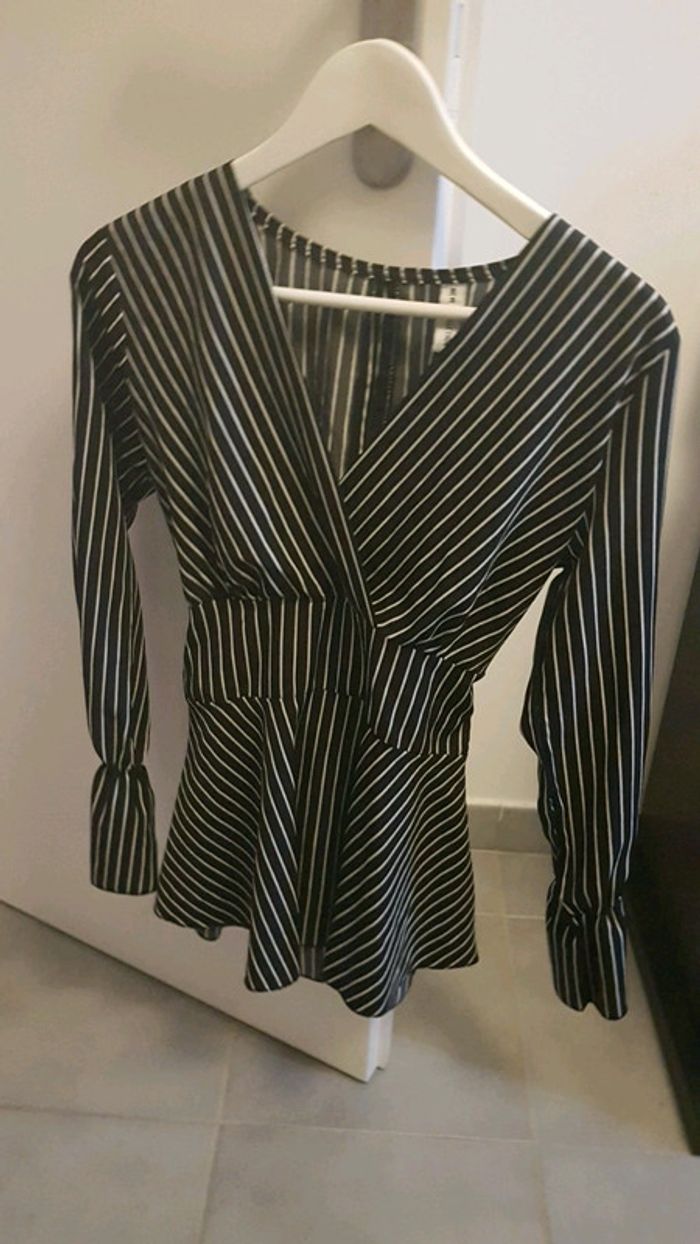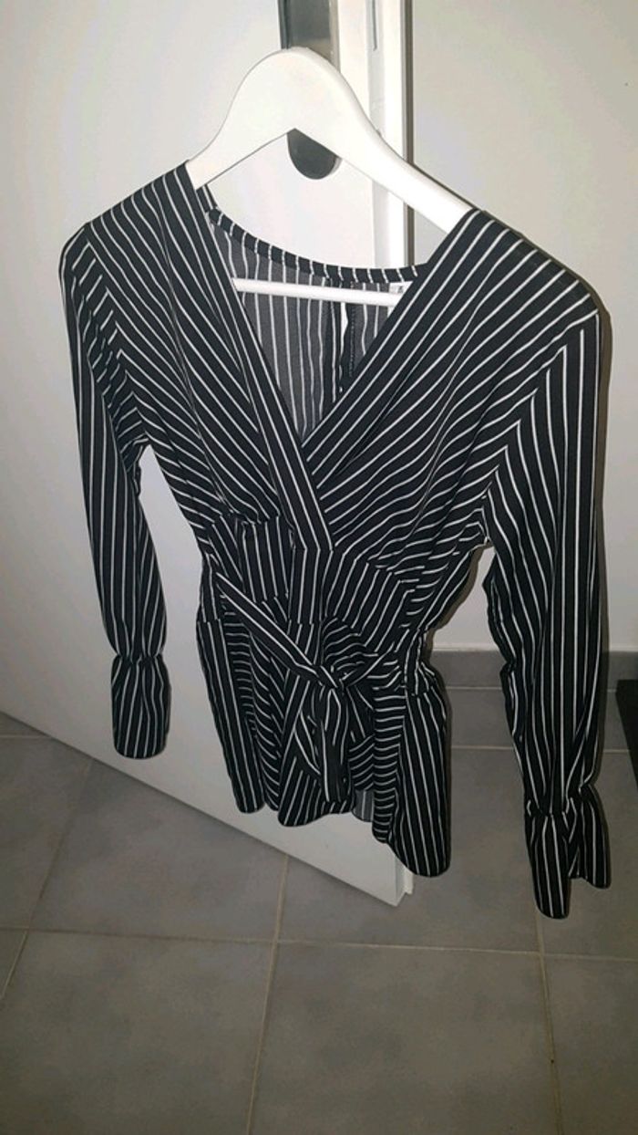 Haut rayures noires et blanches avec jolie décolleté effet cache coeur A nouer devant ou derrière, ouverture sur le dos