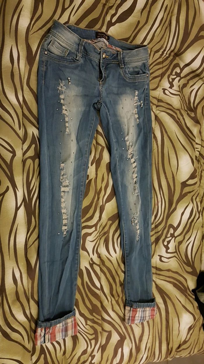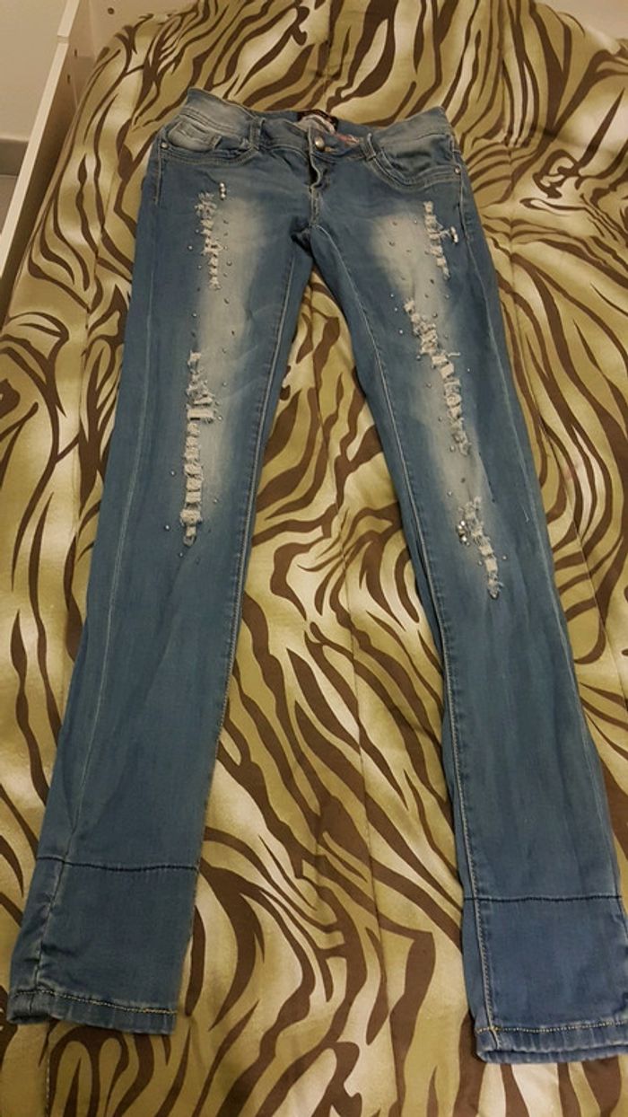Jean strass effet déchiré - photo numéro 1