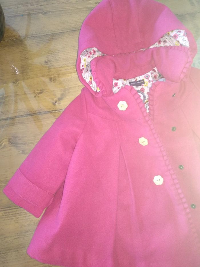 Manteau Sergent major 12 mois avec capuche (elle peut s'enlever avec les boutons) Fermeture pressions Excellent état Maison non fumeur Envoi rapide et soigné Réduction activée sur les lots