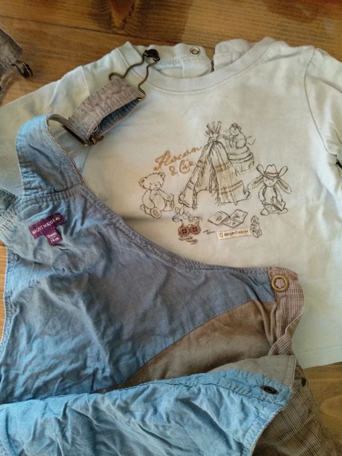 Ensemble sergent major salopette+t-shirt manches longues 12 mois Excellent état Maison non fumeur Réduction activée sur les lots Prix fixe Pas de remise hors lot Envoi rapide et soigné
