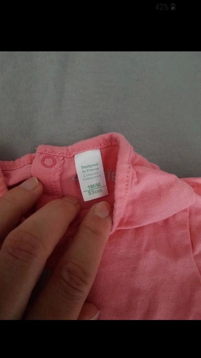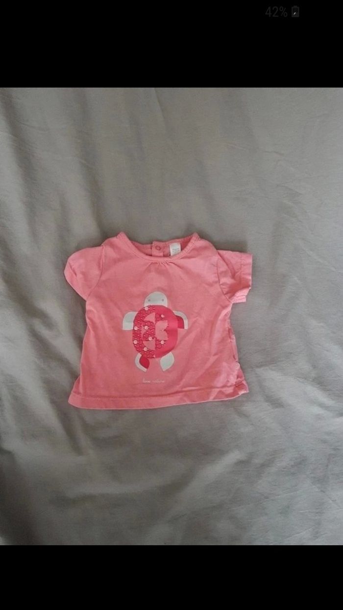 Tee shirt manche courte taille 1mois, couleur corail