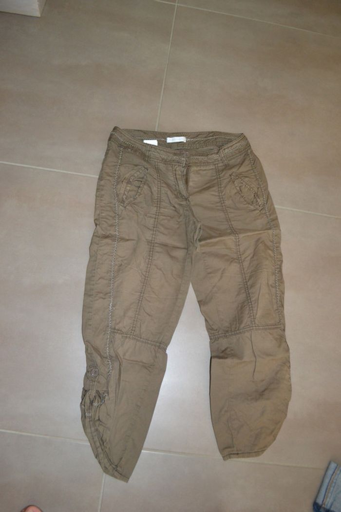 Pantacourt rayures discrètes et couture point zigzag Couleur kaki/marron