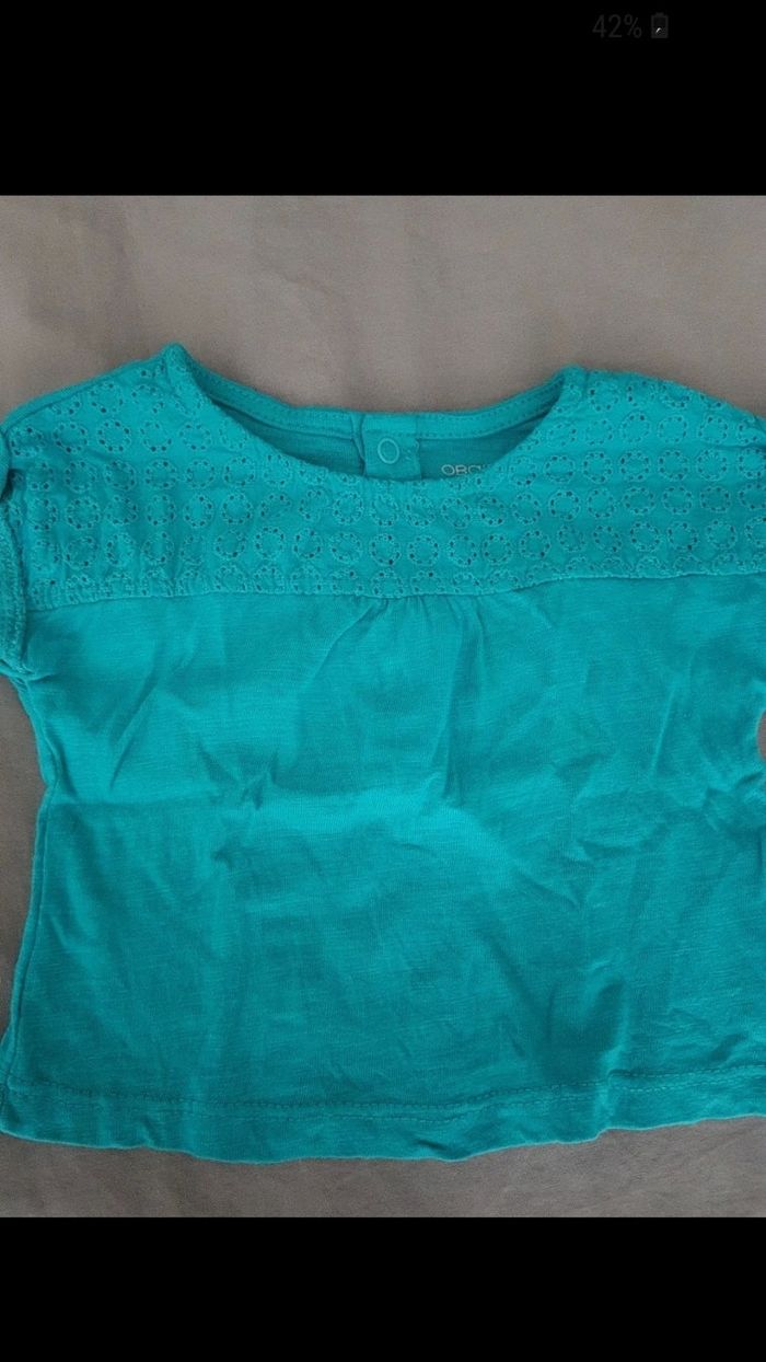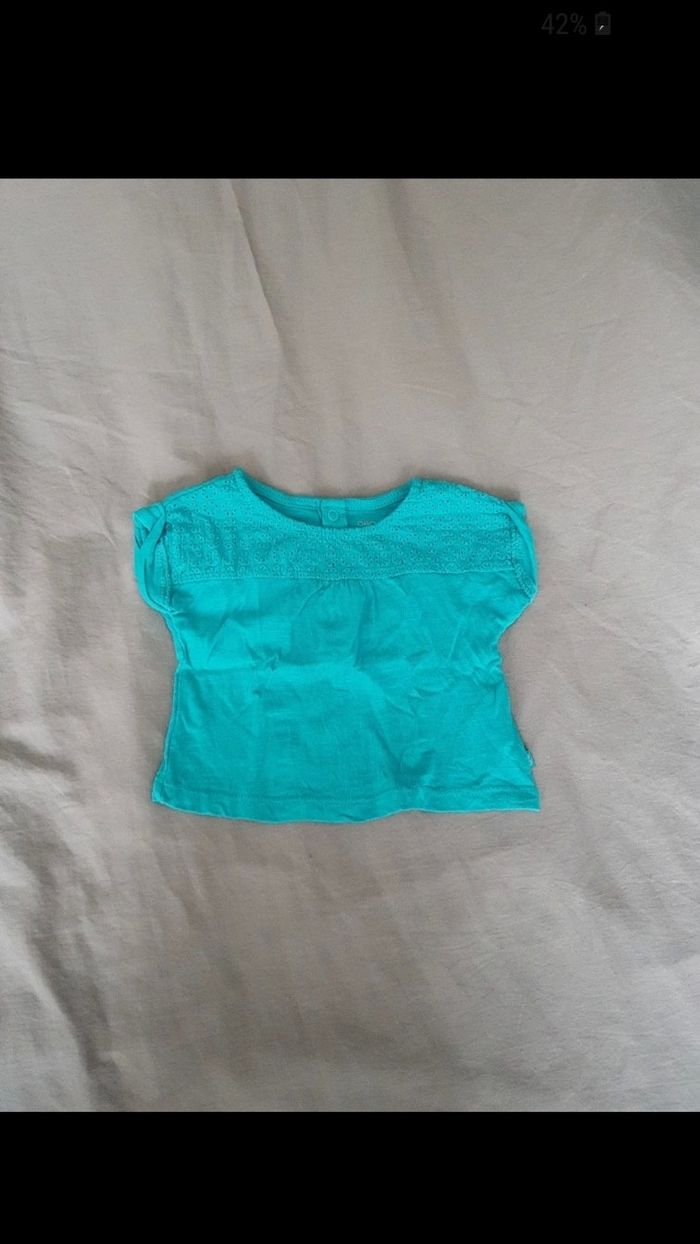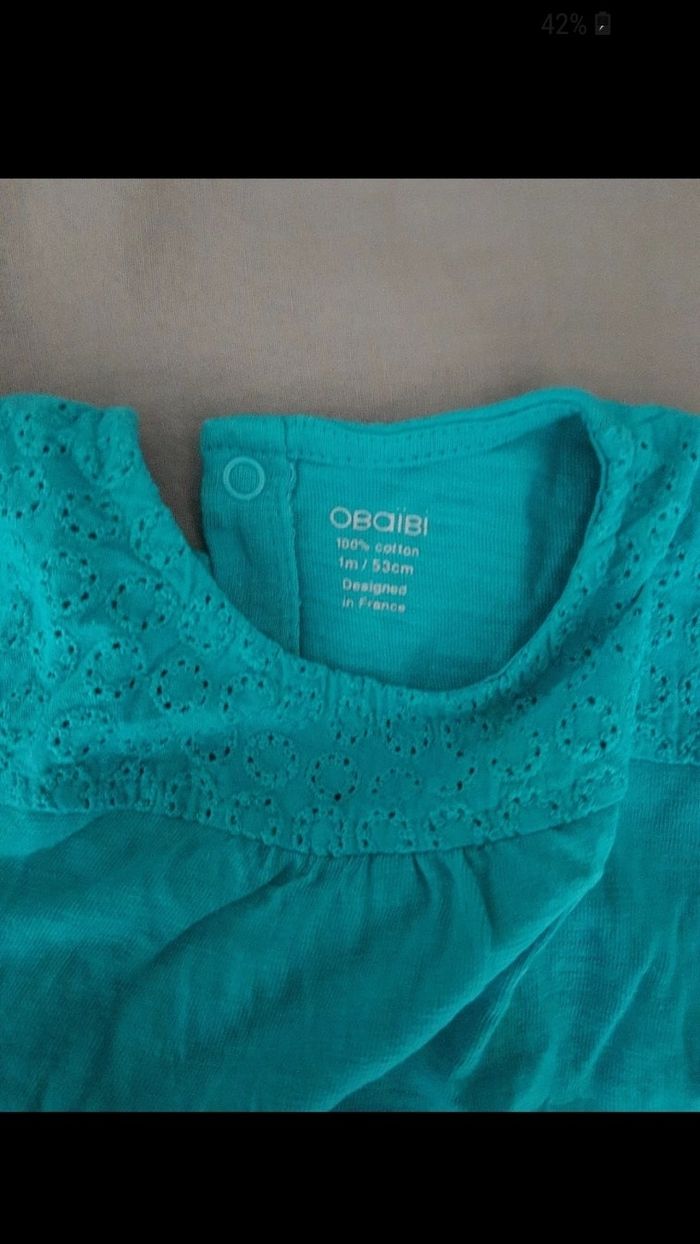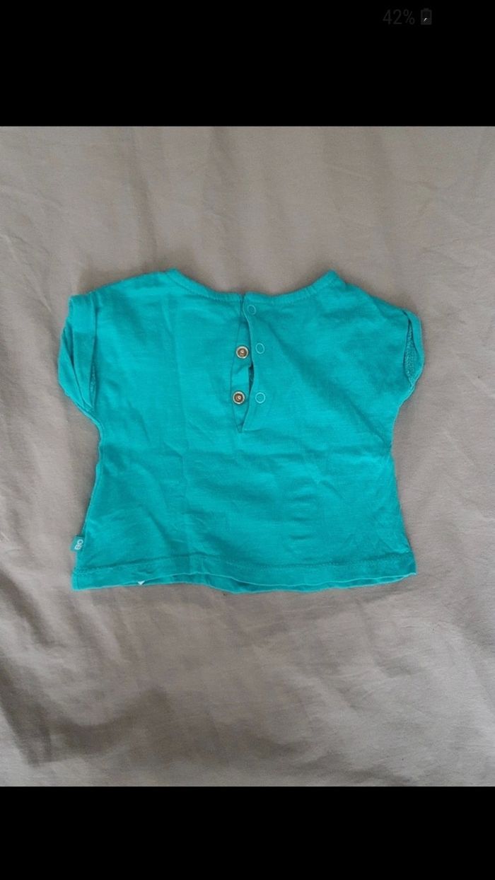 Tee shirt turquoise, manche courte, taille 1 mois