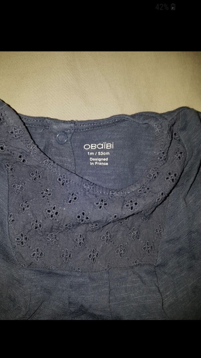 Tee shirt manche courte, taille 1 mois, couleur bleu marine