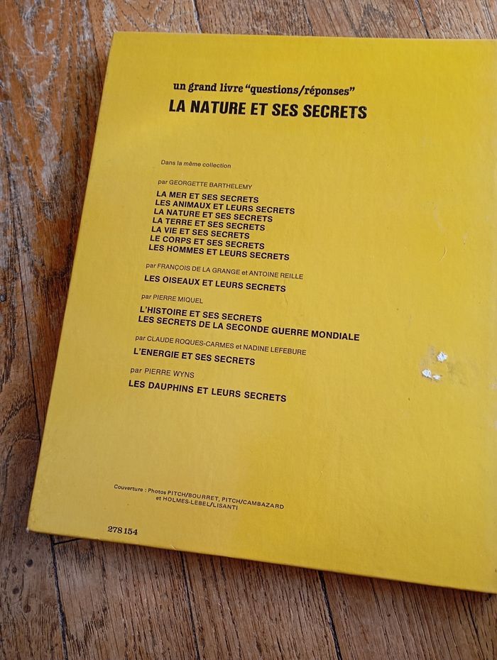 La nature et ses secrets un grand livre "questions/réponse de Georgette Barthélémy chez Fernand Nathan. Bcp de questions et réponses voir table des matières photo. En très bon état, couleur partie à cause de l'étiquette prix et sur la tranche transparent qui se décolle