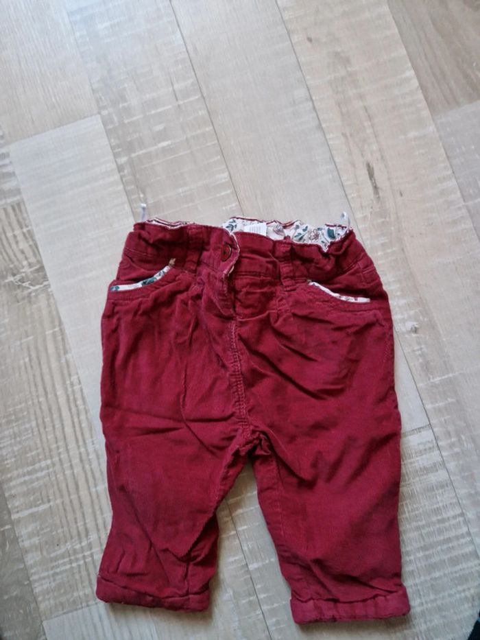 pantalon hiver en velour avec doublure en tissus à l intérieure, taille 12 mois ou 74cm. réglage à la taille avec élastique. en tres bon état.