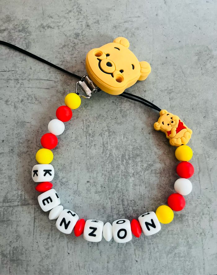 Attache tétine personnalisé en silicone ou en bois au souhait de l’acheteur . Personnalisable au choix de l’acheteur que ce soit la couleur comme le prénom ou le thème . Le fil est doublé pour plus de sécurité tout le long de l’attache tétine. N’hésitez pas à me demander et regarder mon dressing. Une photo vous sera envoyée avant l’expédition pour vous ayez un aperçu du rendu. Tous les produits sont réalisés avec du materiel spécial conçu aux bébés , enfants.