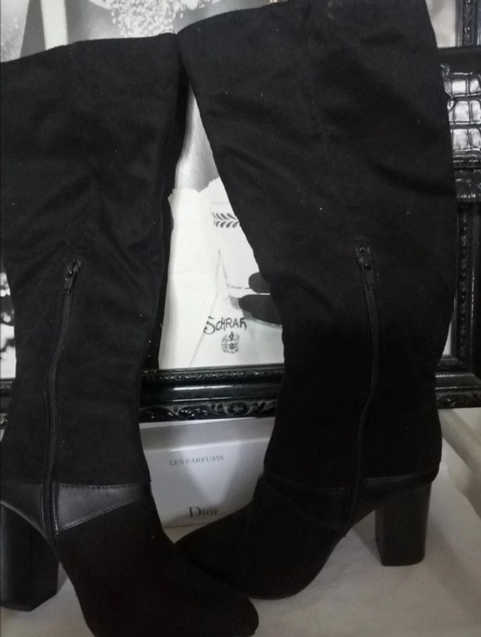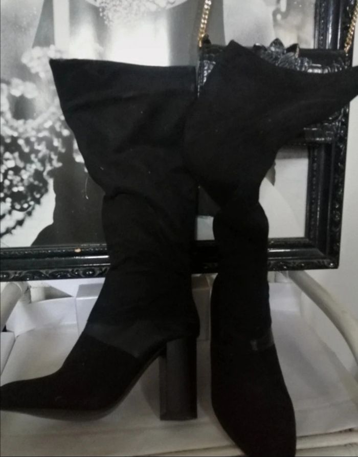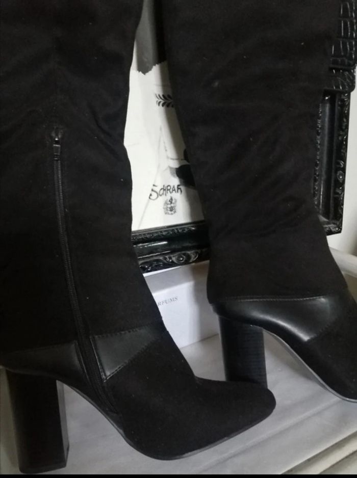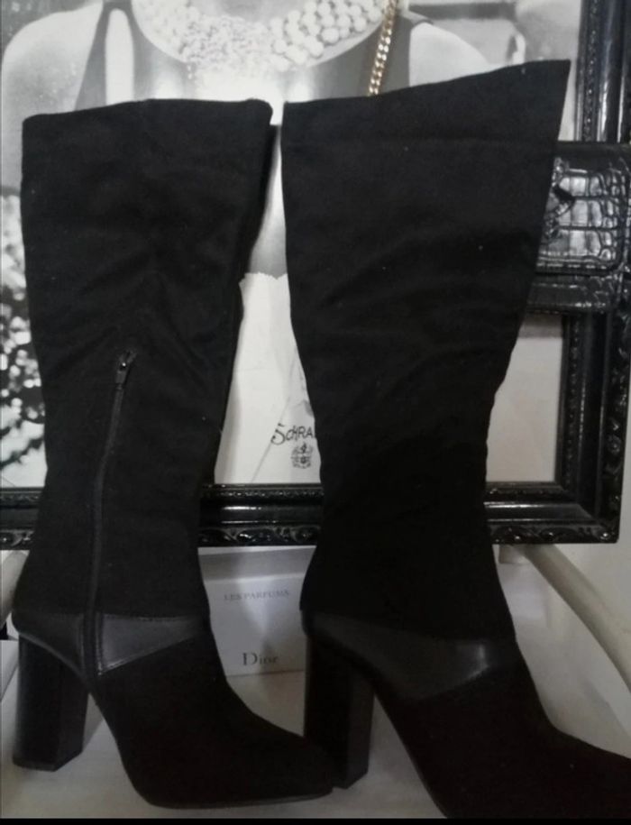 Hautes. Effet daim et Simili cuir Talons 9cm Neuves jamais portees Longeur totale 49cm 38 trop petites pour moi Tour mollet 38/39cm #bottesautre #cadeau_dklou #bottes38femme