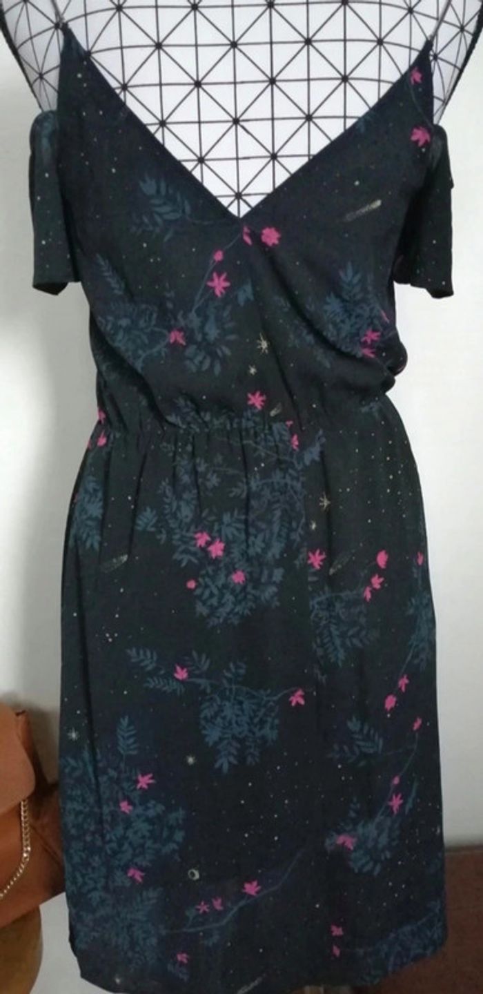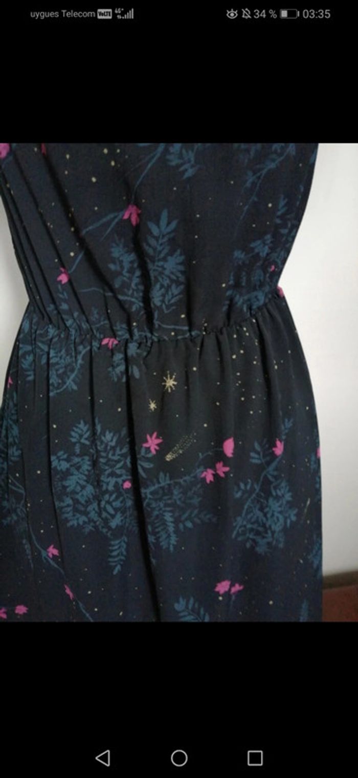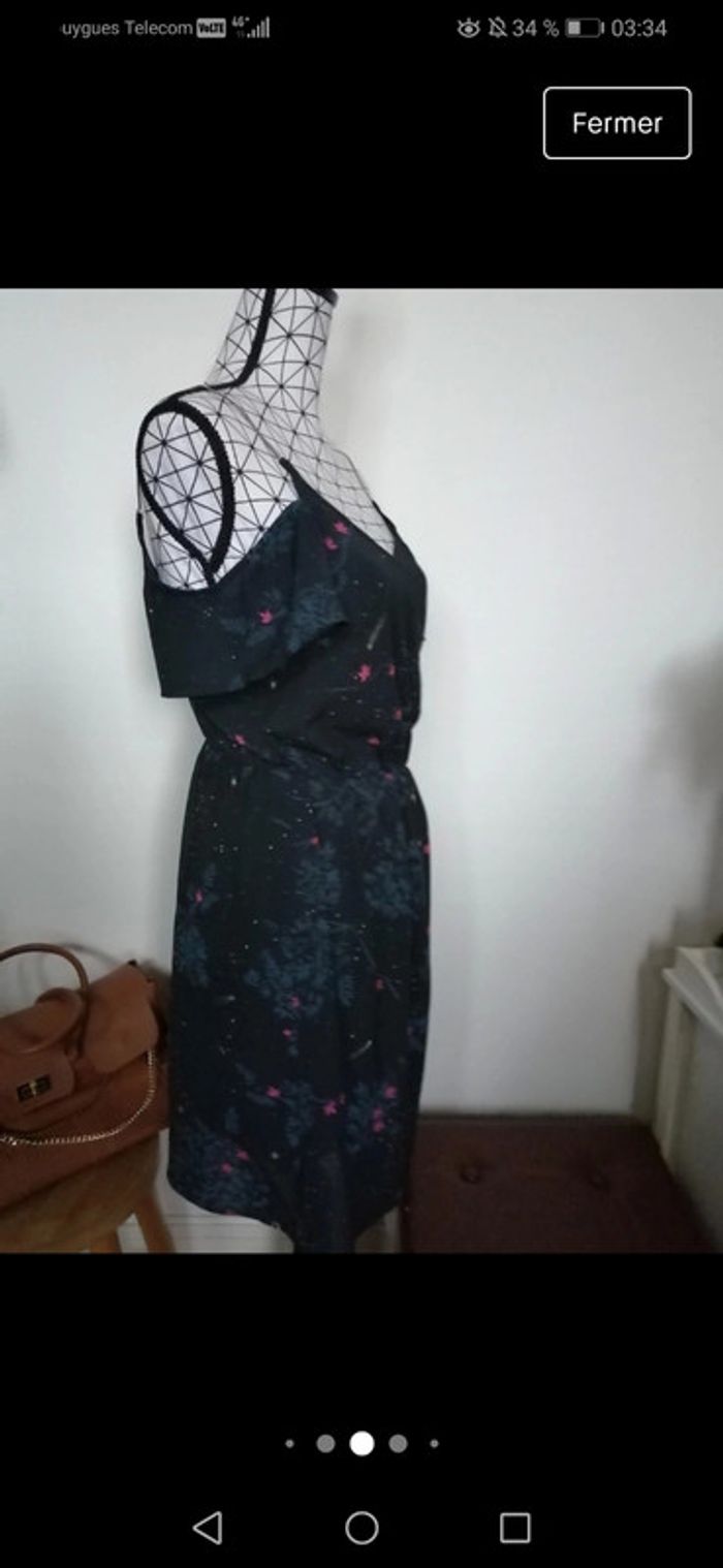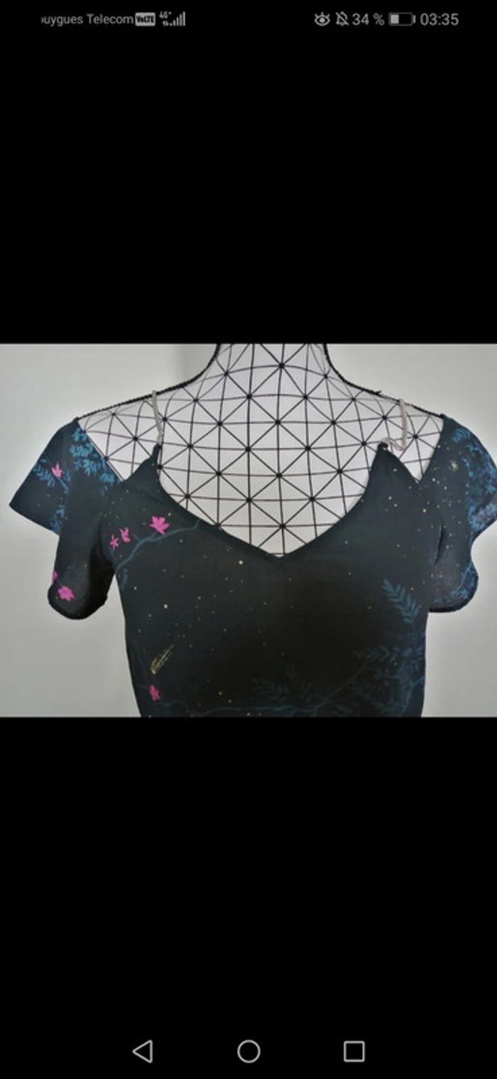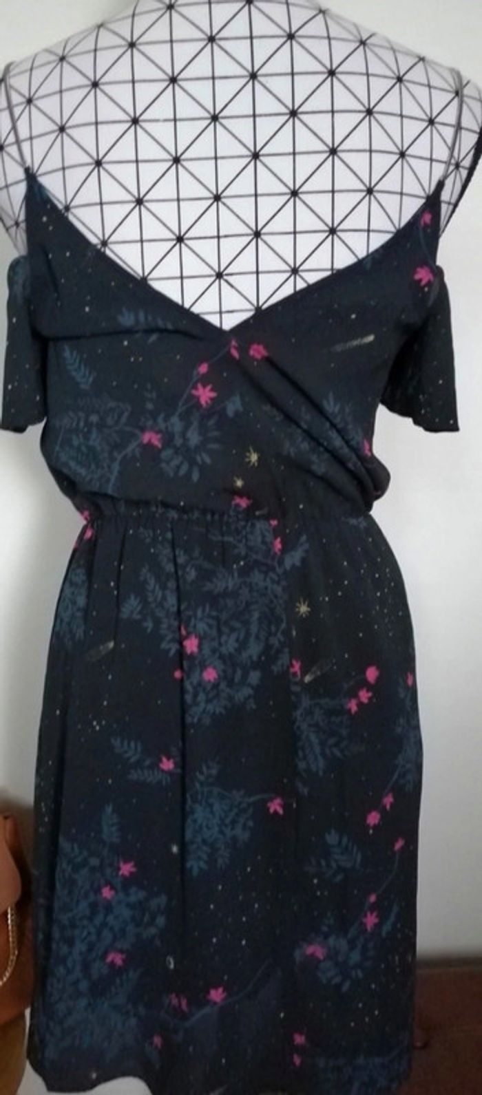 Taille extensible 38 Manches courtes originales qui se dénudent. Décolleté dos Mi longue environ 76cm du décolleté du devant au bas de la robe 94cm au total : des Bretelles au has de la robe Non transparente Désolée l'étiquette intérieure est coupée...