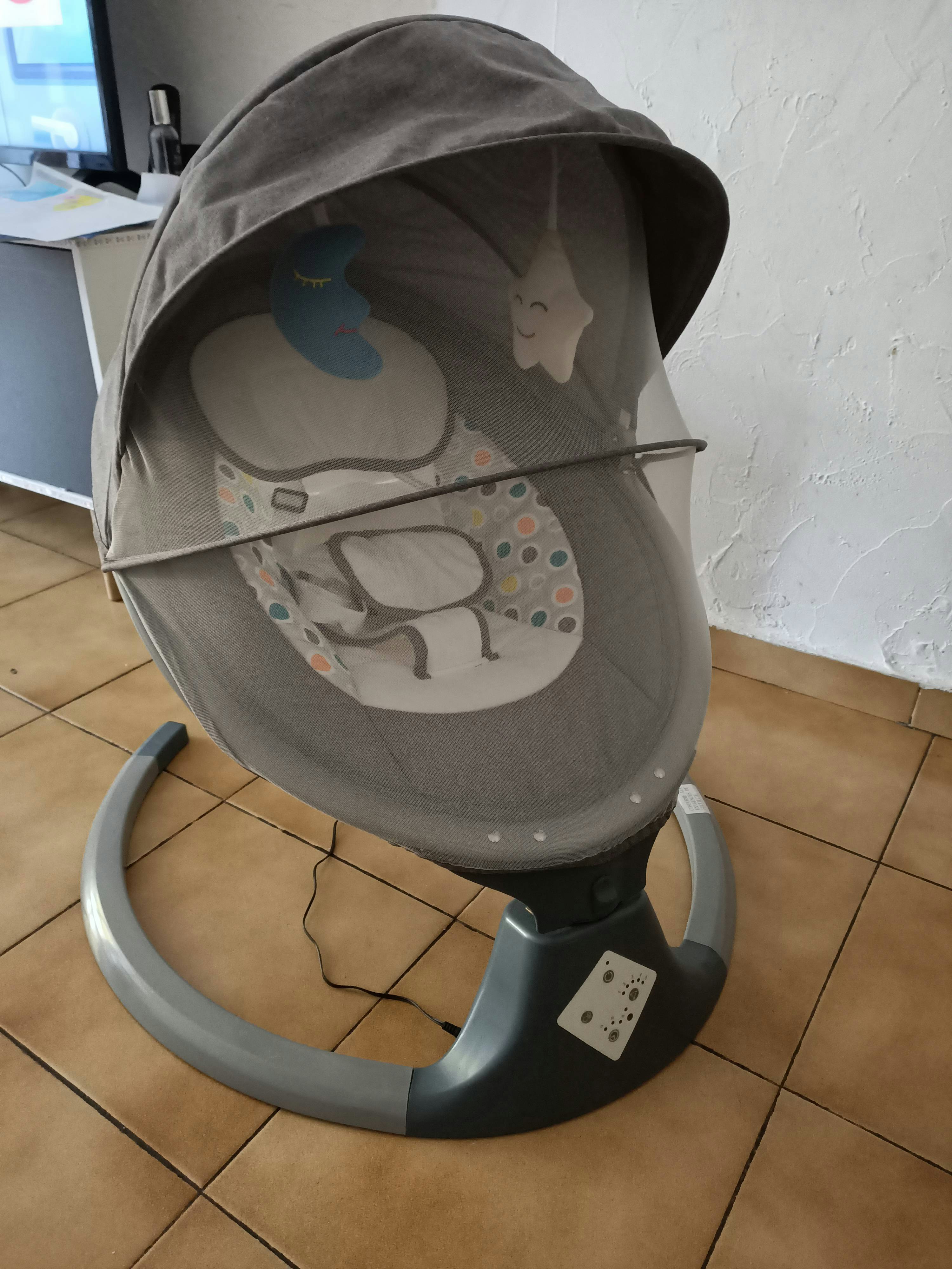 Bonjour je vend balancelle électrique bébé neuf mis bébé 2 fois dedans mais elle n'aime pas . Elle fait de la musique et comprend une minuterie. Elle comprend une télécommande et une prise d'alimentation .