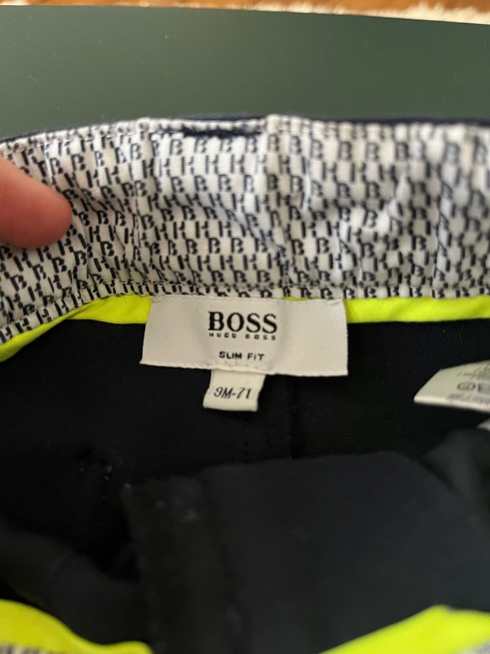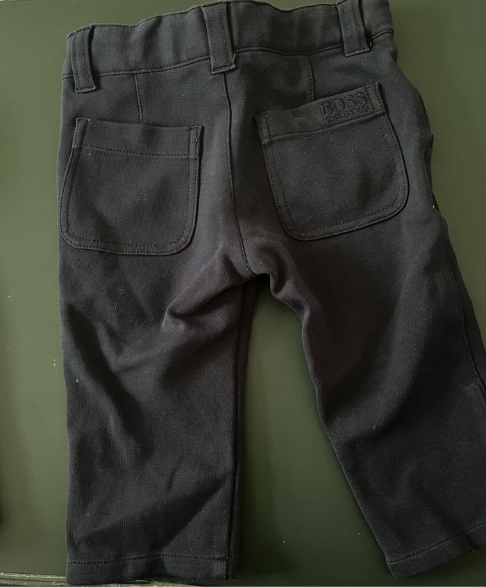 Pantalon Hugo Boss en 9 mois - 71cm Bleu marine Matière agréable un peu élastique Peu porté, parfait état Peut être vendu avec le gilet assorti - ensemble idéal pour une cérémonie ou une fête